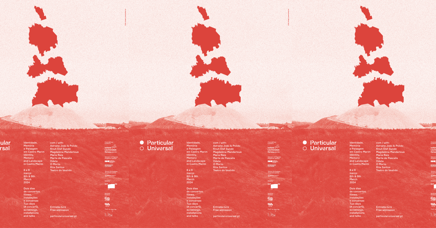 Nos dias 8 e 9 de março, celebramos o final do projeto Particular Universal com um festival que mostra trabalhos de vários dos artistas residentes em Castro Marim ao longo destes dois anos, realizados em diálogo com a identidade, tradições e paisagens visuais e sonoras do Concelho.